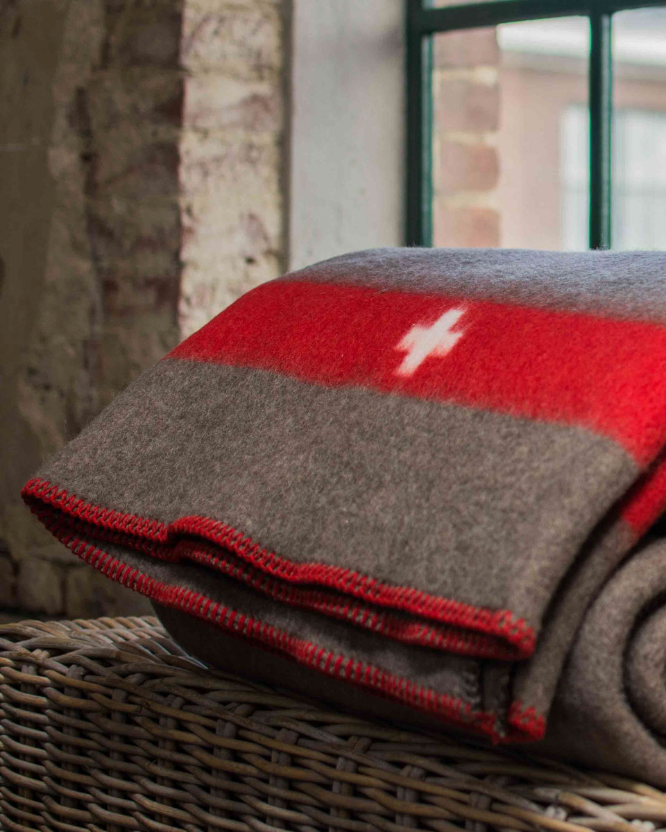 Geïnspireerd door de iconische Swiss Army Blanket, staat de Swiss symbool voor moed en vastberadenheid. De klassieke festonsteek langs de rand geeft een ambachtelijke, stoere uitstraling. Perfect voor kamperen, outdoor gebruikof gewoon als blikvanger in huis.
