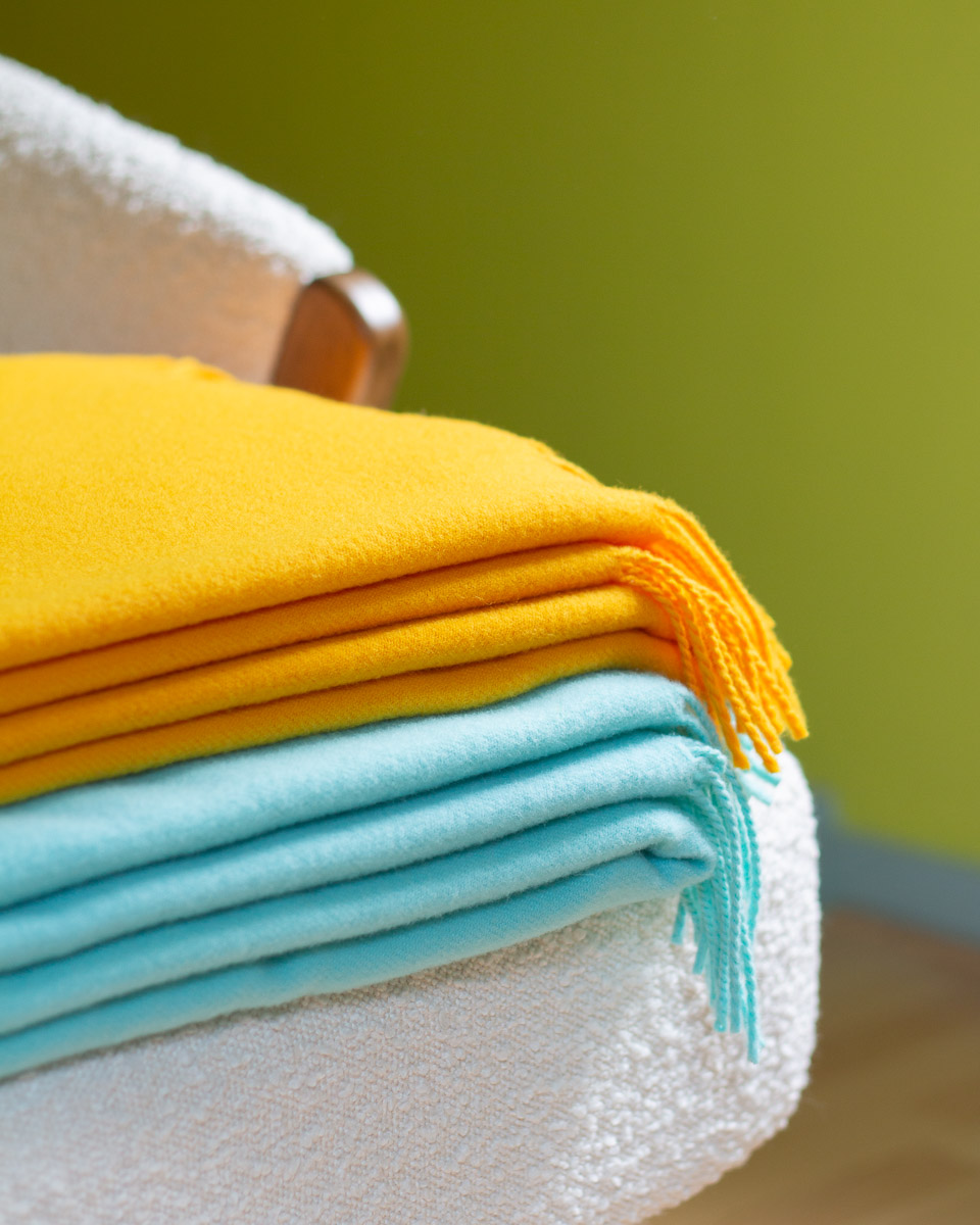 We raden aan uw plaid te laten reinigen door de stomerij.