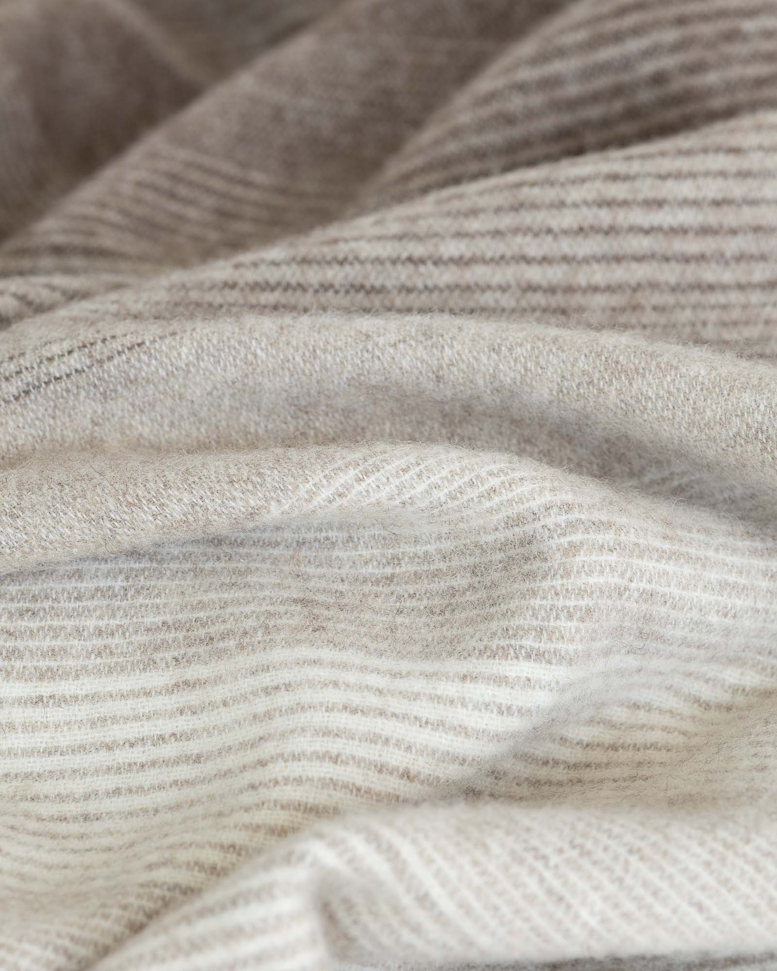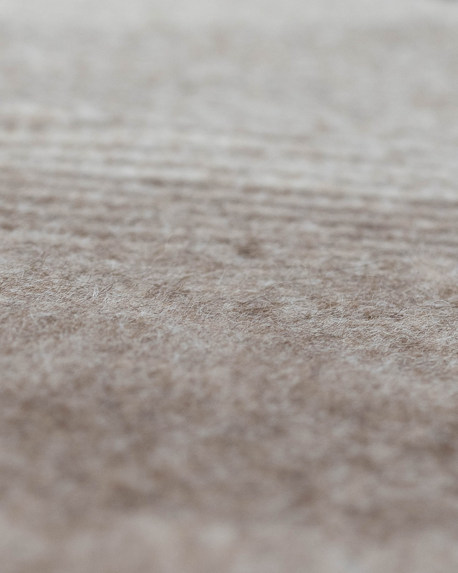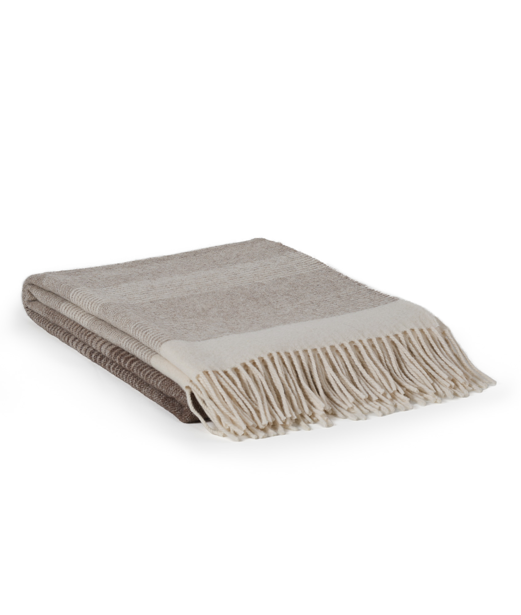 Een plaid die niet alleen warmte en behaaglijkheid brengt, maar ook de pure schoonheid van natuurlijke wol viert – rechtstreeks uit Mongolië, zonder toevoegingen.